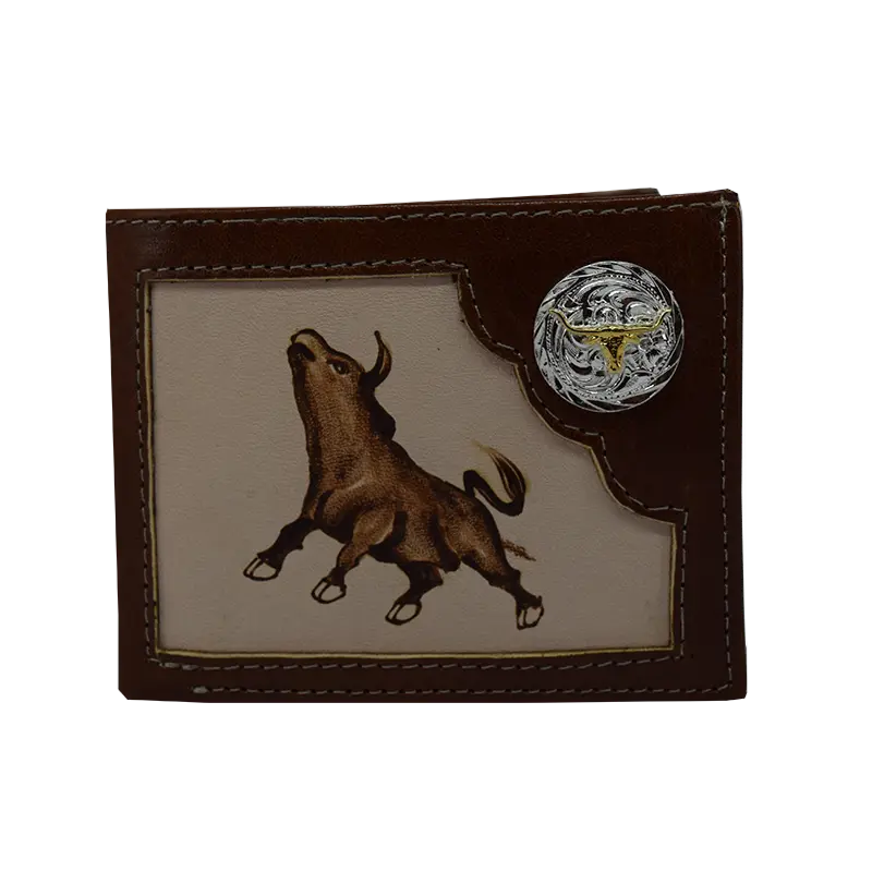 Billetera de piel pirograbada a mano.