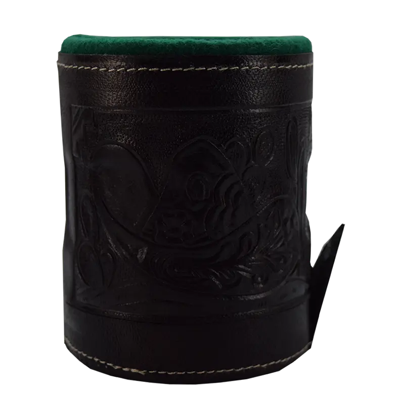 Cubilete elaborado con piel.